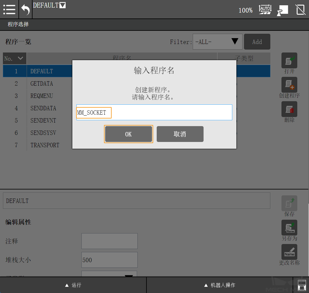 新建机器人程序。