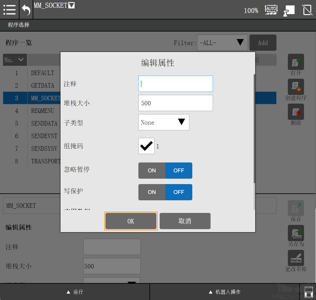 输入程序名,例如 MM_SOCKET,然后单击 OK 。