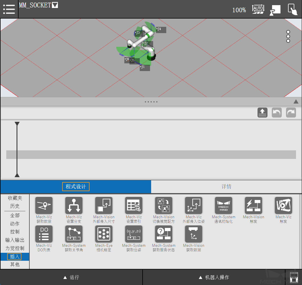 查找 Mech-System 通讯初始化 ,将其拖入上方动作流。