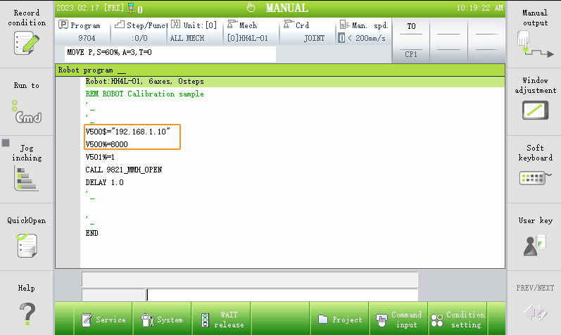 将 V500$ 的值修改为工控机 IP,将 V500% 的值修改为 Mech-Vision 中设置的端口号。