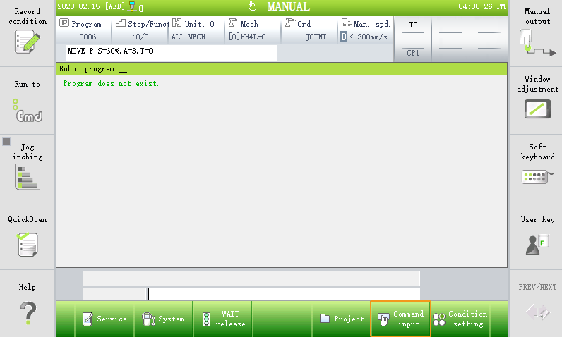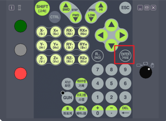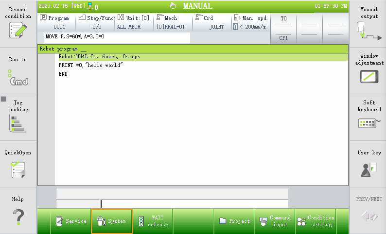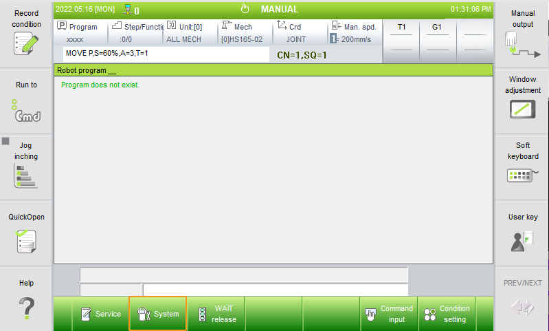 将旋钮切换到自动模式下,然后按下 START 按钮,执行机器人程序 9704。