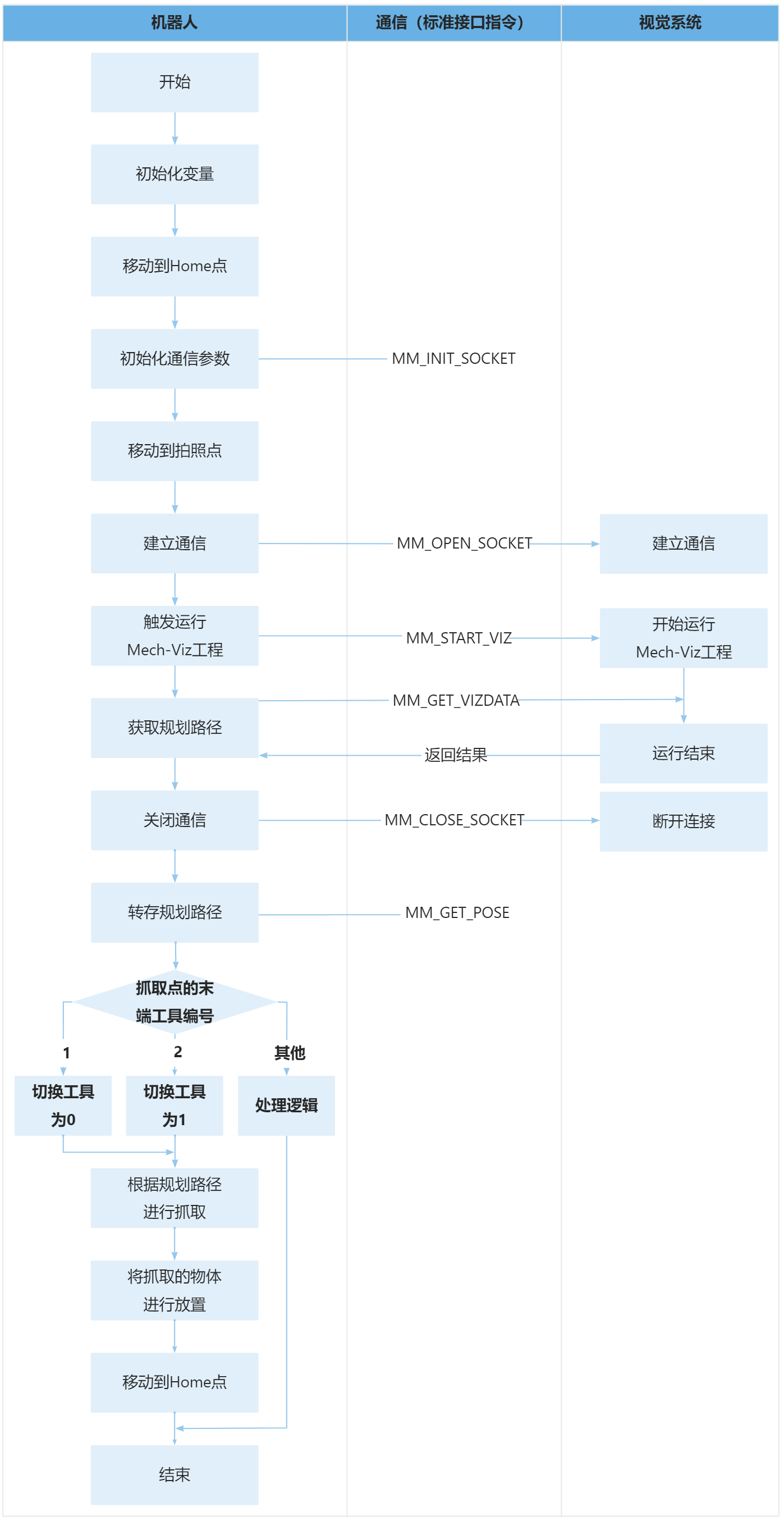 | 与MM_S2_Viz_Basic样例相比,本样例新增了根据末端工具编号切换工具的功能(加粗部分的代码)。因此,下文不再重复解释与MM_S2_Viz_Basic样例相同部分的代码(详情请参考MM_S2_Viz_Basic样例说明)。 |