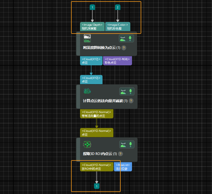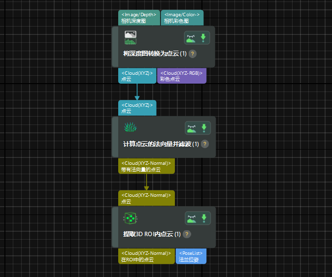 步骤组合制作完成后,即可将该步骤组合与工程中其他步骤连接,以实现“点云预处理”功能。