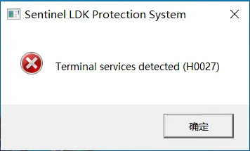 通过远程控制的方式打开被加密软件时,软件打开失败,并弹窗报错“检测到终端服务(H0027)”。