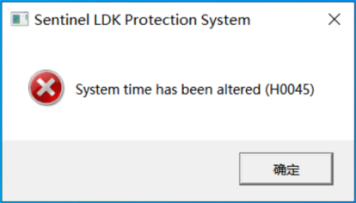 打开被加密的软件时,软件打开失败,并弹窗报错“系统时间已被更改(H0045)”。