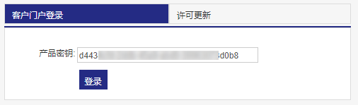 进入授权管理系统登录页面,输入产品密钥并单击登录按钮。