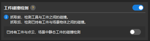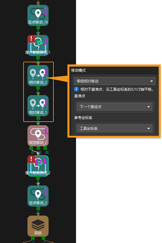 筐内智能路径 您正在查看最新版本(V2.1.2)的文档。如果您想查阅其他版本的文档,可以点击页面右上角“切换版本”按钮进行切换。 ■ 如果您不确定当前使用的产品是哪个版本,请随时联系梅卡曼德技术支持。 工程简介 本样例用于说明如何使用筐内智能路径步骤在单个深筐内抓取散乱堆叠的圆管。Mech-Viz软件可基于料筐及工件模型信息,自动生成机器人进筐抓取工件并退出的路径,有效规避碰撞。 实际应用效果如下: 应用场景 适用于在单个深筐或浅筐内抓取有序或无序工件。 浅筐示例 深筐示例 工作流程说明 使用筐内智能路径步骤的功能搭建范式如下图所示。 工程搭建时的注意事项如下: 需要分别为进筐路径和出筐路径添加筐内智能路径步骤,且筐内智能路径步骤必须与视觉移动步骤相邻。 视觉移动步骤的抓取工艺必须设置为常规抓取。 筐内智能路径步骤不可以位于工作流程末尾,其后必须连接其他路径点确定的移动类步骤。 每个筐内智能路径步骤对应两个路径点。抓取阶段为抓取前时,对应的路径点为入筐点和接近点,抓取阶段为抓取后时,对应的路径点为离开点和出筐点。编写机器人通讯程序时需要注意接收两个路径点。详细说明请参考样例程序。 在抓取阶段为抓取前时,筐内智能路径步骤应和视觉移动步骤相邻,且筐内智能路径步骤位于视觉移动步骤之前。 参数调节说明 筐内智能路径步骤 抓取阶段:位于视觉移动步骤之前的筐内智能路径步骤的抓取阶段必须设置为抓取前,而位于视觉移动步骤之后的筐内智能路径步骤的抓取阶段必须设置为抓取后。 料筐选择:请选择在工程资源树的场景物体中添加的类型为料筐的场景模型。当料筐的位姿或尺寸设置有误,或选择不正确的料筐时,可能会导致路径规划失败,甚至在抓取过程中发生碰撞。 策略模式:详细介绍请参考策略模式。 碰撞检测参数配置 使用筐内智能路径步骤时,必须在碰撞检测功能面板中开启工件碰撞检测。更多碰撞检测相关的调参建议,请参考碰撞检测参数配置。 应用注意事项 若要将此样例应用于实际生产,可参考以下注意事项对工程进行修改和配置,快速投入使用。 关闭视觉记录,通过视觉识别步骤调用相应的Mech-Vision工程来获取视觉结果。 配置场景物体及末端工具模型。 在碰撞检测功能面板中配置各项参数。 该页面是否有帮助? 我要反馈 感谢您的支持! 可以通过以下方式反馈意见: 社区 反馈表单 自动切换工具 常见故障处理