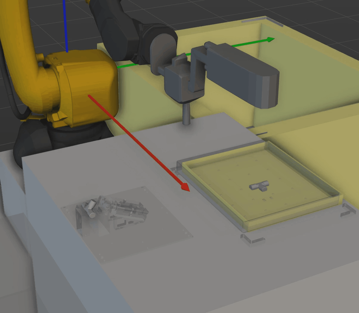 手动控制机器人持工件到达目标放置位置。